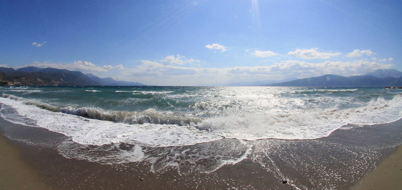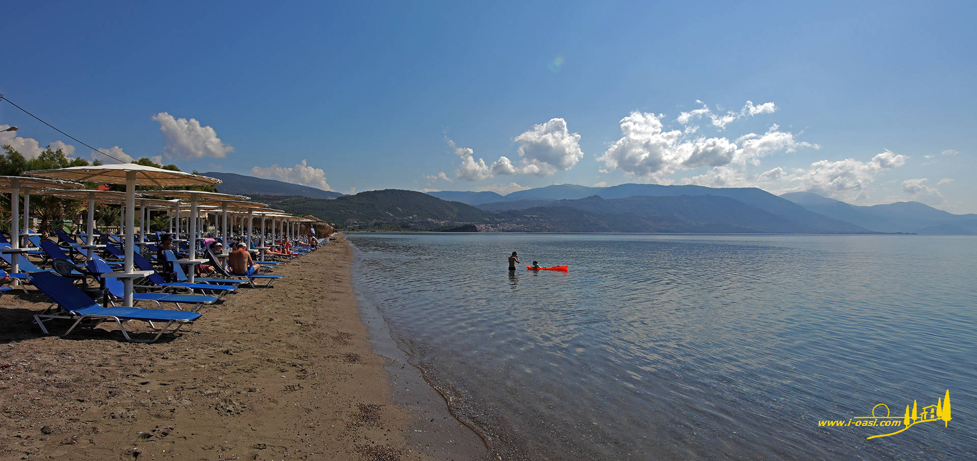 grünen Landzunge, die sich weit in den Golf von Korinth erstreckt.