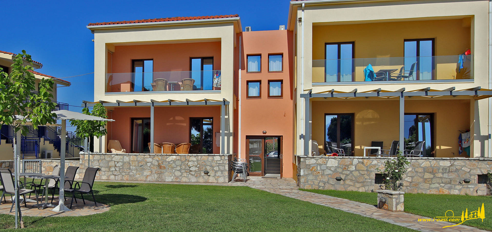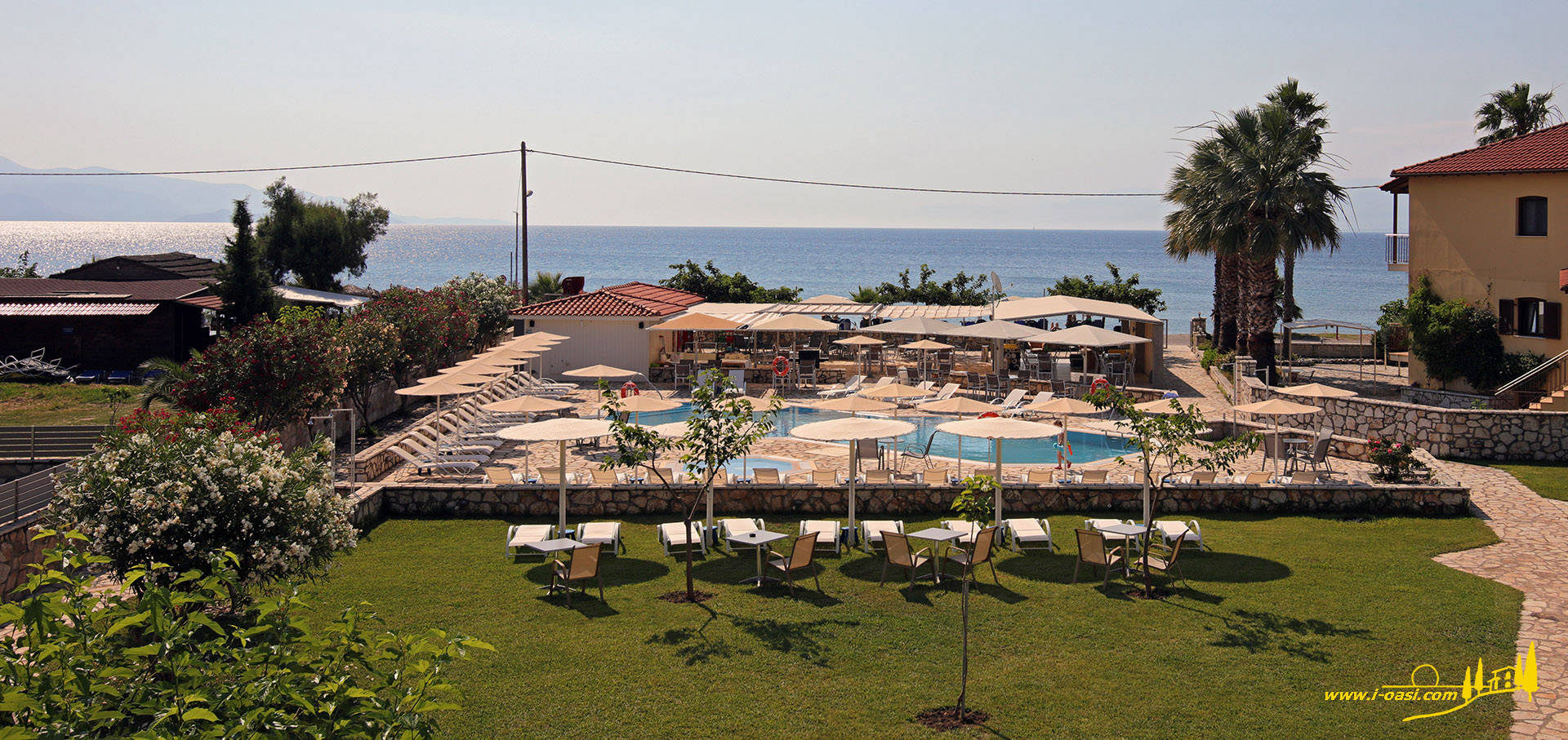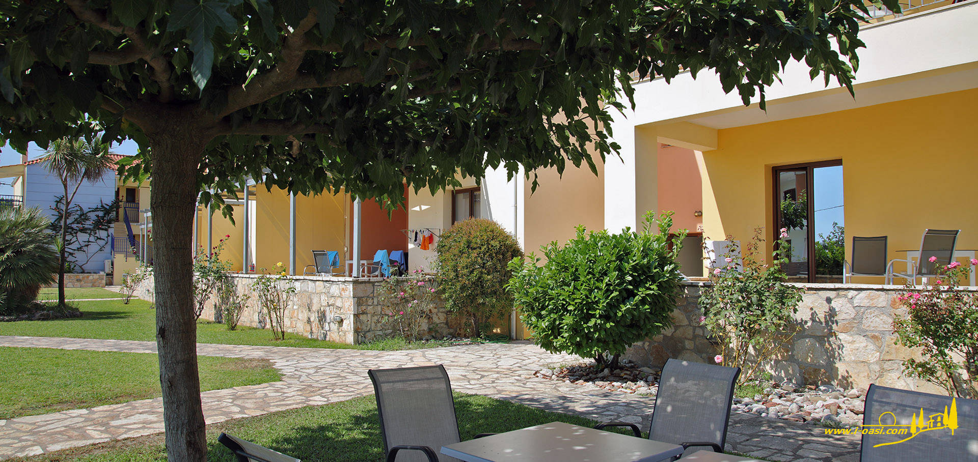 Die Oase liegt direkt am Rand des Dorfes Chiliadou mit einem idylischen